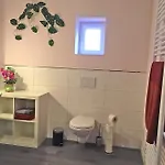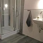 Monteurswohnung apartment features a bathroom with hair dryers and towels. Furthermore, a separate toilet and a shower is available.